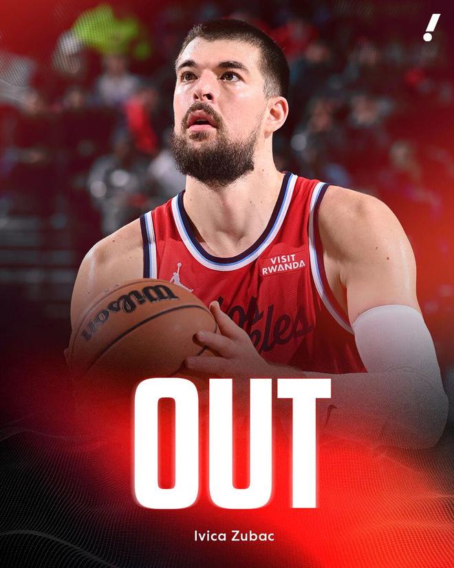 來自名記Shams的最新報道,因為左腳踝二級扭傷,快船中鋒祖巴茨將缺席數周,隨后另一名記Chris Haynes跟進報道,祖巴茨預計在三周后重新評估傷情。